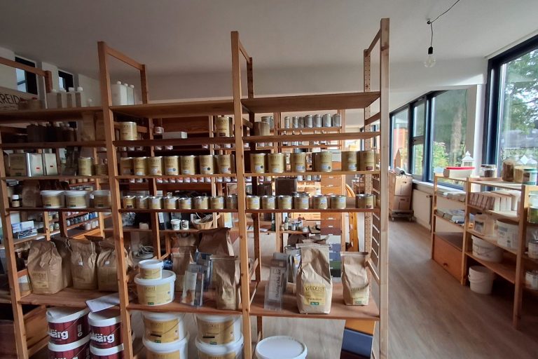 Vor Ort beraten wir Sie persönlich zu ökologischen Baustoffen, bieten eine große Auswahl an nachhaltigen Produkten – und über unseren Partner können Sie bei Bedarf auch einen Anhänger mieten